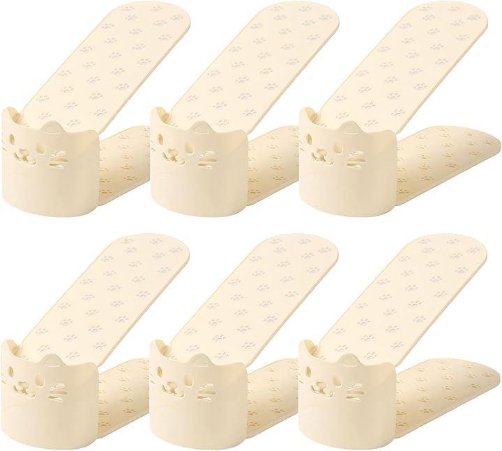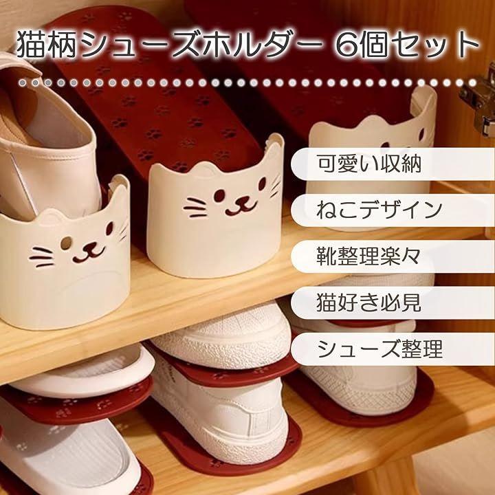 「便利な6個セット」 6個セットの猫柄シューズホルダーは、複数の靴をきちんと整理できる便利なアイテムです。