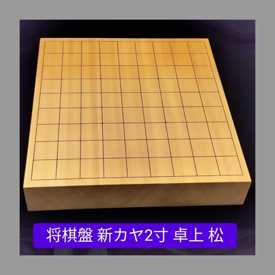 新カヤ(スプルース)の2寸卓上将棋盤です。店頭陳列に伴い生じた若干の凹み箇所がございますので予めご了承下さい。もちろんご使用に際しては影響のない程度です