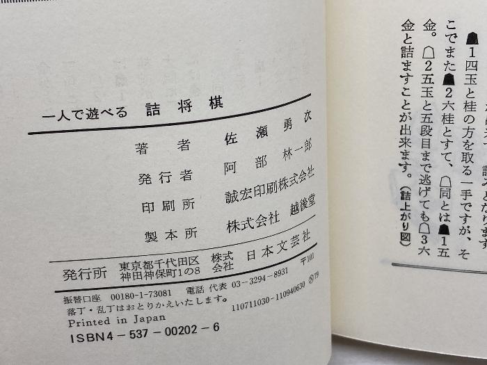 商品名:一人で遊べる詰将棋: アッと驚く奇手・妙手特選110選 二人でやれば楽しさも倍増 日本文芸社 佐瀬 勇次