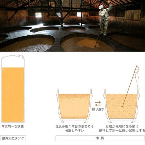 最も醸造期間が短い淡口醤油でも1年前後。濃口醤油で1?2年半。再仕込醤油で2?3年と、長期に渡って蔵の影響や人の管理を受け続けるため、その間の手の入れ方こそが仕上がりを左右させます。