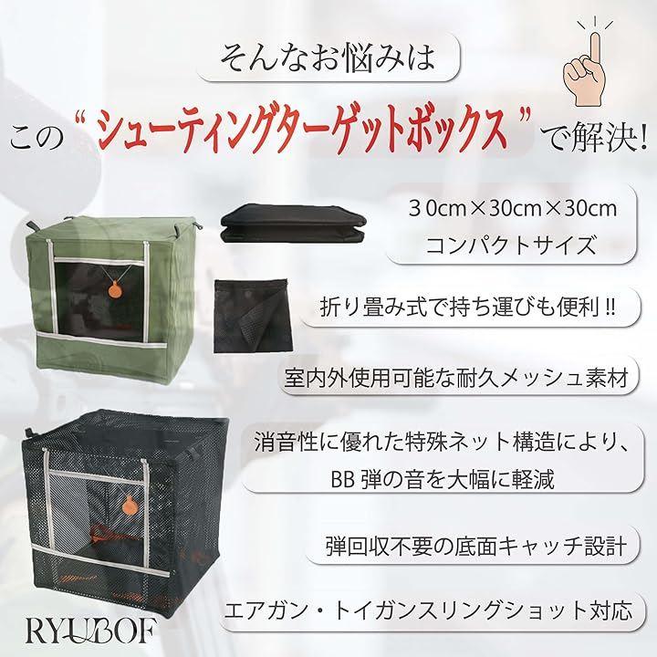 「折りたたみ式で携帯ケース付き」 30cmx30cmx30cmのコンパクトサイズながら使用時は十分な練習スペースを確保し、使用後は平らに折りたたんで専用ケースに収納できるため、サバゲー会場への持ち運びも楽々です。