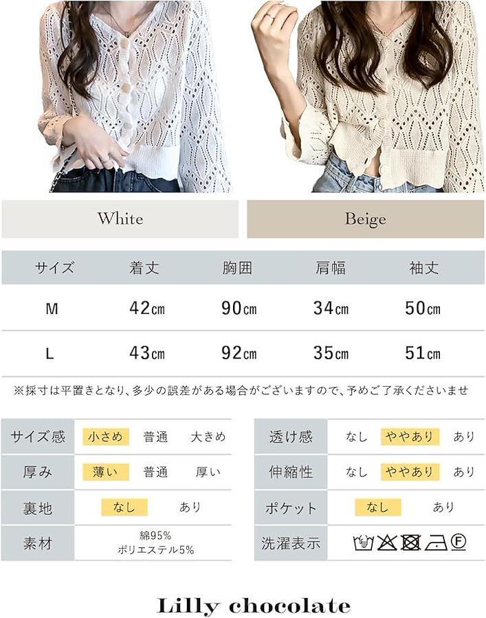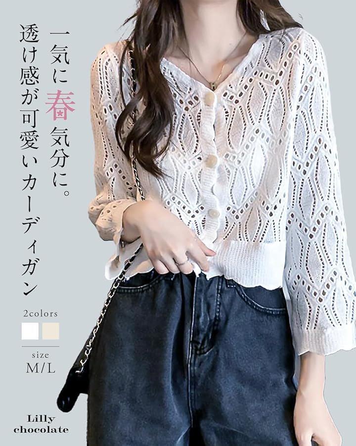 繊細な透かし編みが魅力のショート丈カーディガンになります。
