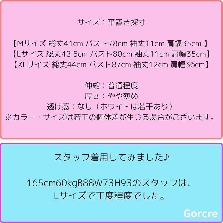 「平置きサイズ」「Mサイズ 総丈41cm バスト78cm 袖丈11cm 肩幅33cm 」 「Lサイズ 総丈42.5cm バスト80cm 袖丈11cm 肩幅35cm」「商品内容:Tシャツ1点」「素材:ポリエステル、コットン」 *平置き採寸の為、採寸方法により若干の差が発生する場合がございます。