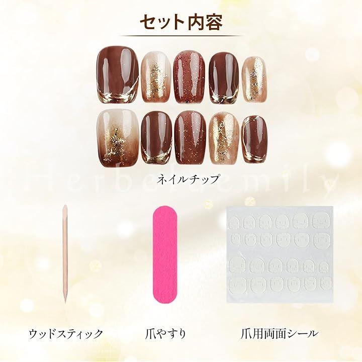 「商品仕様」専用クリアケース:7.5x7.5x1.6cm ネイルチップ10枚 付属品:両面シール、ウッドスティック、爪やすり *ネイルチップサイズの詳細は商品画像をご確認ください。