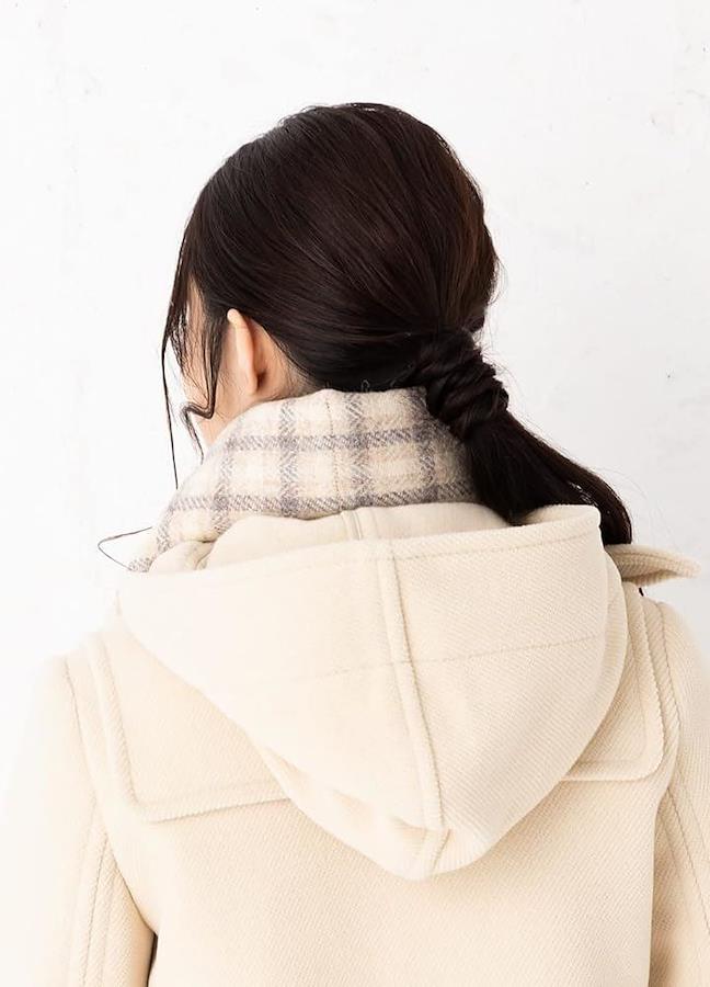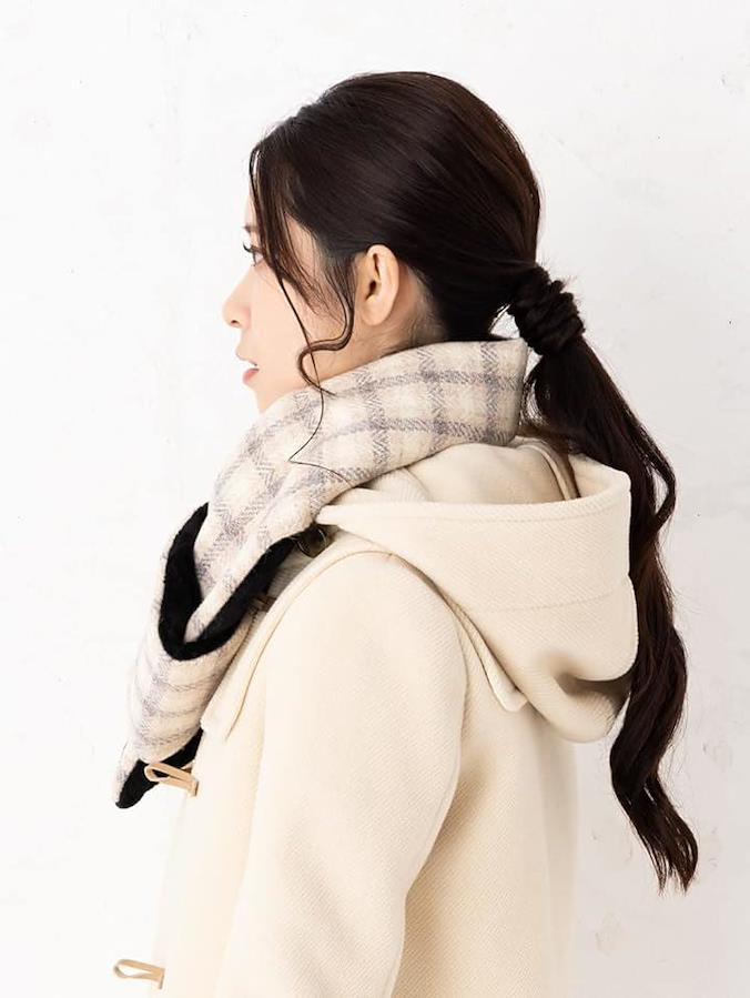 ・首が短めの方や、長いマフラーが苦しい方、巻き方がよく分からない…そんな方にもワンタッチで お洒落を楽しめる、暖かさもしっかりな実用的なマフラーに仕上がりました。