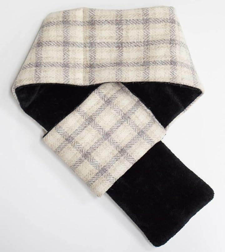 肌に触れる部分は触り心地がとても良いボア素材で保湿性、保温性に優れた中綿入りのマフラー。