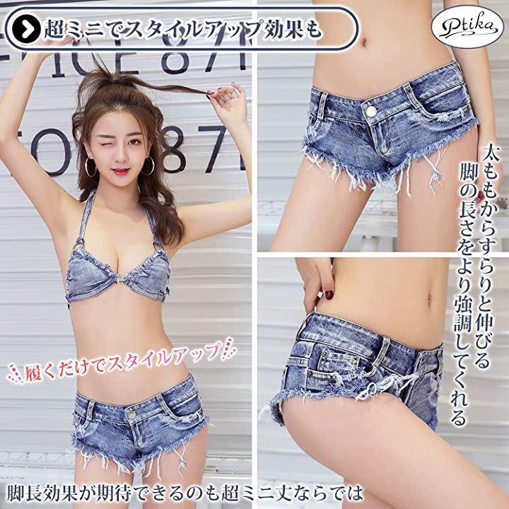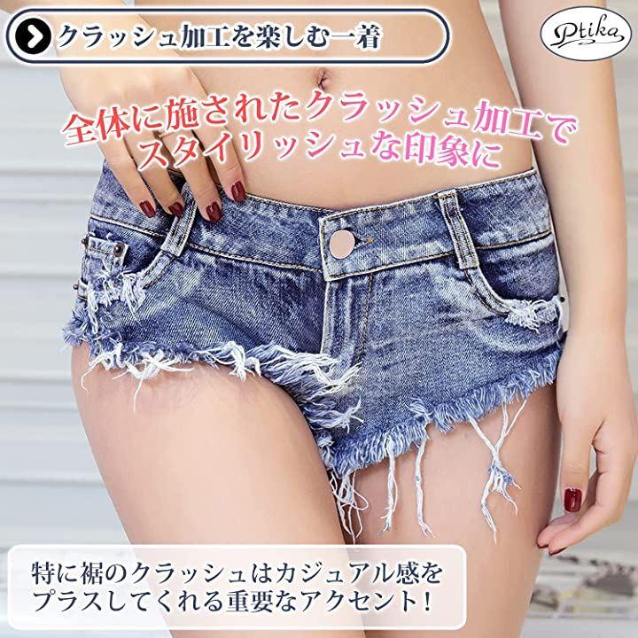 Ptikaショートパンツデニムレディースセクシークラッシュ脚長ローライズホットパンツ