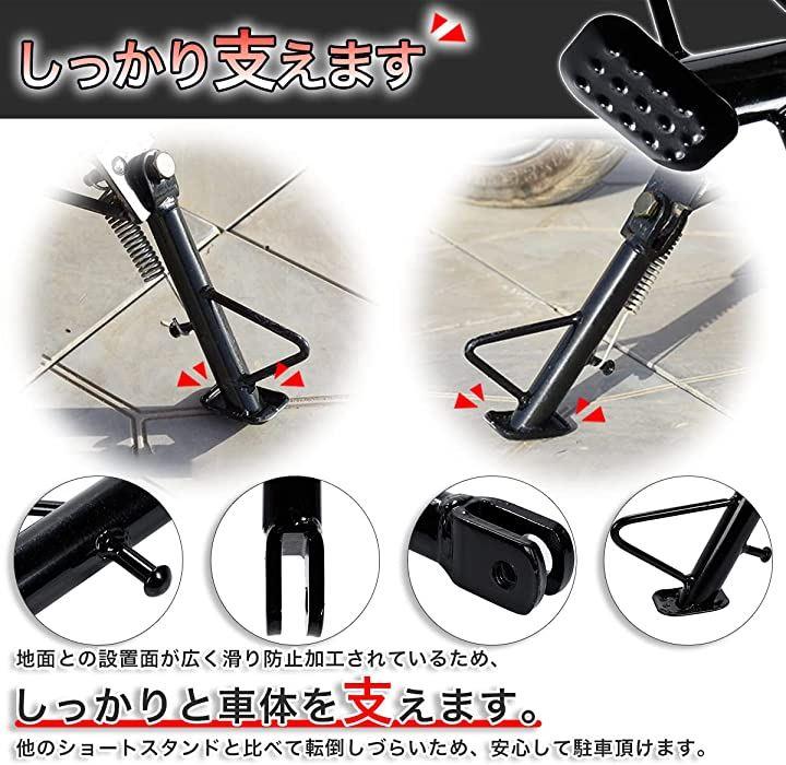 v「しっかり支えます」:地面との設置面が広く滑り防止加工されているため、しっかりと車体を支えます。