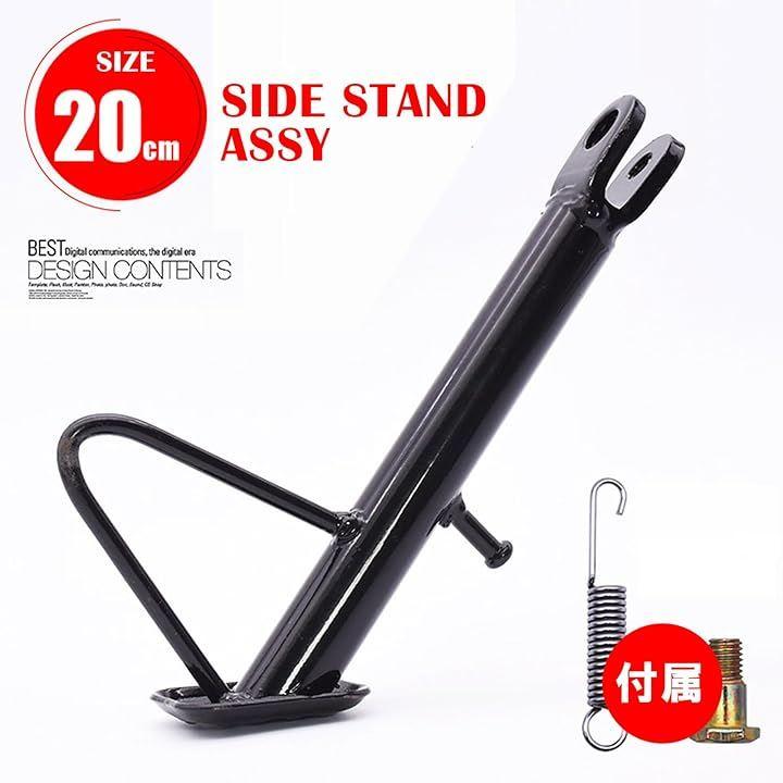 ・車高調整 ローダウン シャコタン でサイドスタンド交換する際に ・素材:スチール製 ・仕様 全長:取付穴から約200mm 脚太:約22mm 取付部厚:約6.5mm ・幅広い車種に適合 参考適合車種適合例:スーパーカブ リトルカブ モンキー ダックス シャリー ローダウン シャコタン モンキー ゴリラ ダックス シャリィ シャリー CD50 CD90 Jazz マグナ Solo 等 ・サイズ・長さ 既存スタンドの取付穴からの全長を参考にサイズをお選びください (既存スタンドが無い場合、両輪が接地した状態でバイクを保持し地面から取付穴までの高さ(垂直長さ)に2~3cm加えたぐらいの長さがおおよその参考サイズとなります)・「注意事項」既存スタンド外し方や取り付けに関するサポートはしておりません。