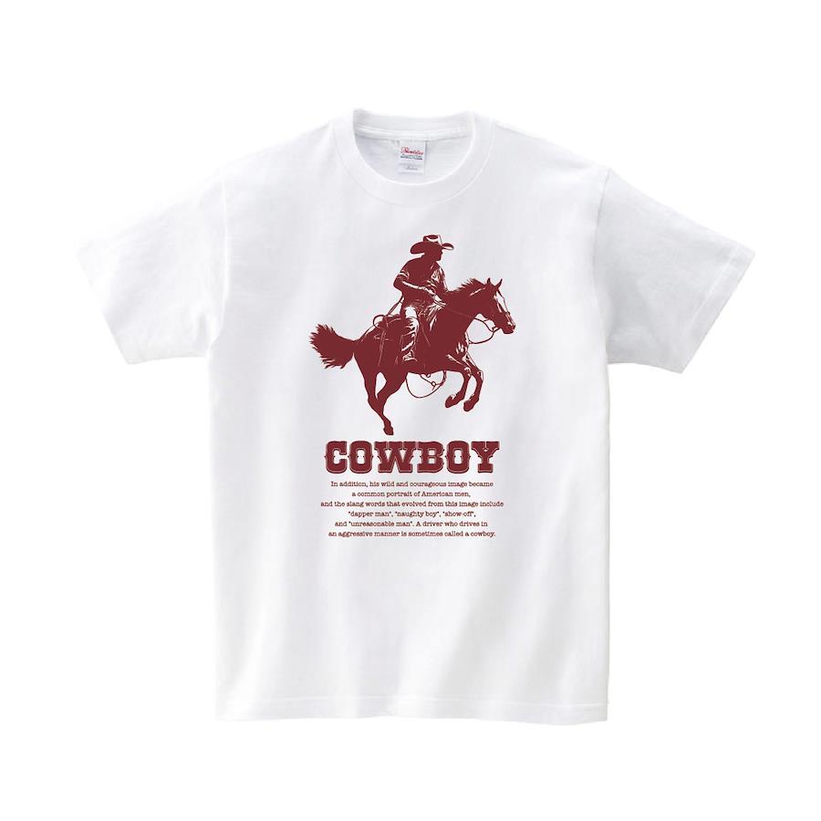 アメリカ西部開拓時代のカウボーイのTシャツです。 ※画像ははめ込み画像となり、実際とは多少異なりますので予めご了承ください。 ※サイズ表をよくご確認の上ご購入ください。 ※受注生産となるため、返品、交換はご遠慮ください。