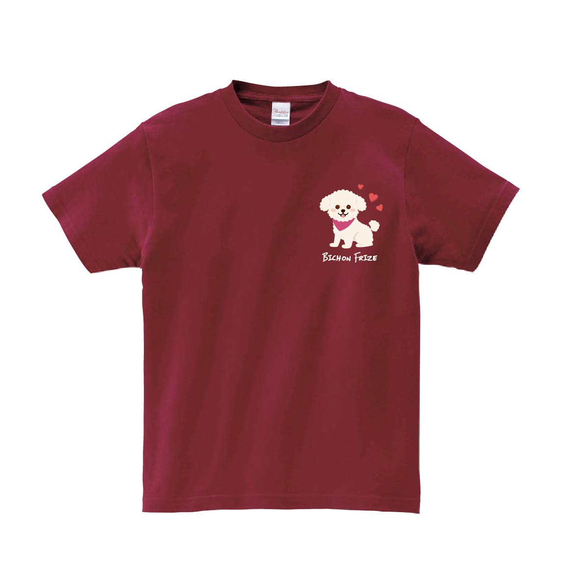 かわいいビションフリーゼのイラストデザインTシャツです。※画像ははめ込み画像となり、実際とは多少異なりますので予めご了承ください。 ※サイズ表をよくご確認の上ご購入ください。 ※受注生産となるため、返品、交換はご遠慮ください。