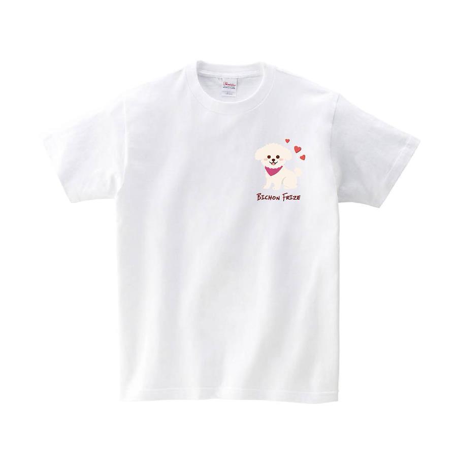 かわいいビションフリーゼのイラストデザインTシャツです。※画像ははめ込み画像となり、実際とは多少異なりますので予めご了承ください。 ※サイズ表をよくご確認の上ご購入ください。 ※受注生産となるため、返品、交換はご遠慮ください。