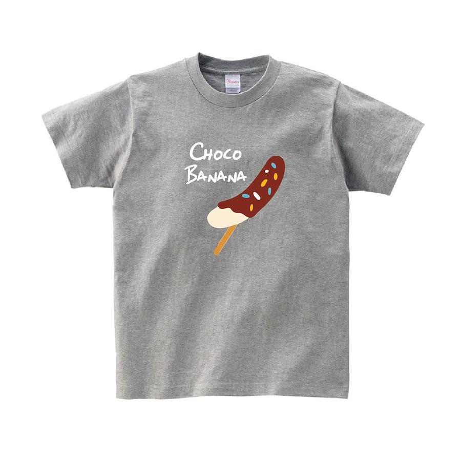 チョコバナナのポップなイラストデザインTシャツです。※画像ははめ込み画像となり、実際とは多少異なりますので予めご了承ください。 ※サイズ表をよくご確認の上ご購入ください。 ※受注生産となるため、返品、交換はご遠慮ください。