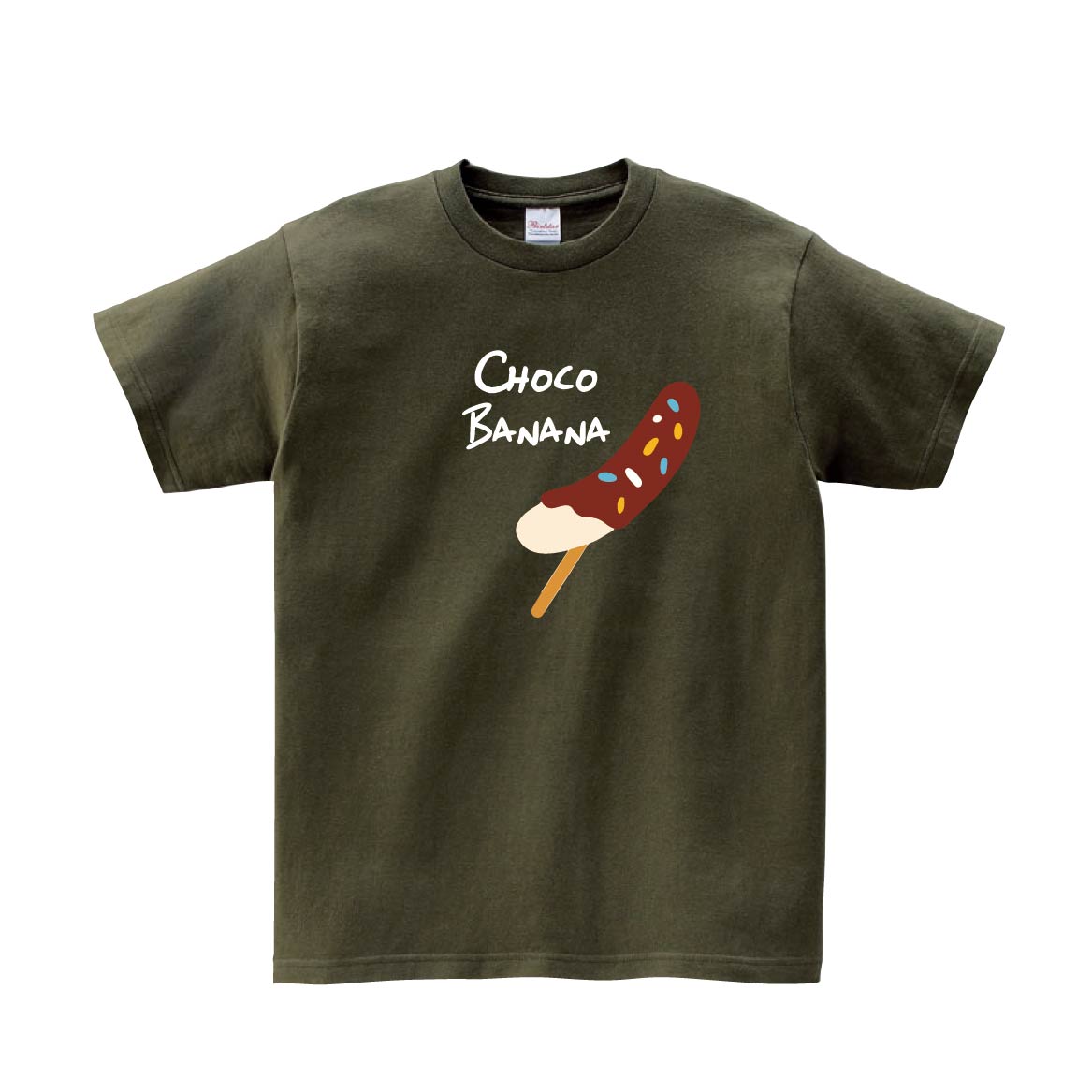 チョコバナナのポップなイラストデザインTシャツです。※画像ははめ込み画像となり、実際とは多少異なりますので予めご了承ください。 ※サイズ表をよくご確認の上ご購入ください。 ※受注生産となるため、返品、交換はご遠慮ください。