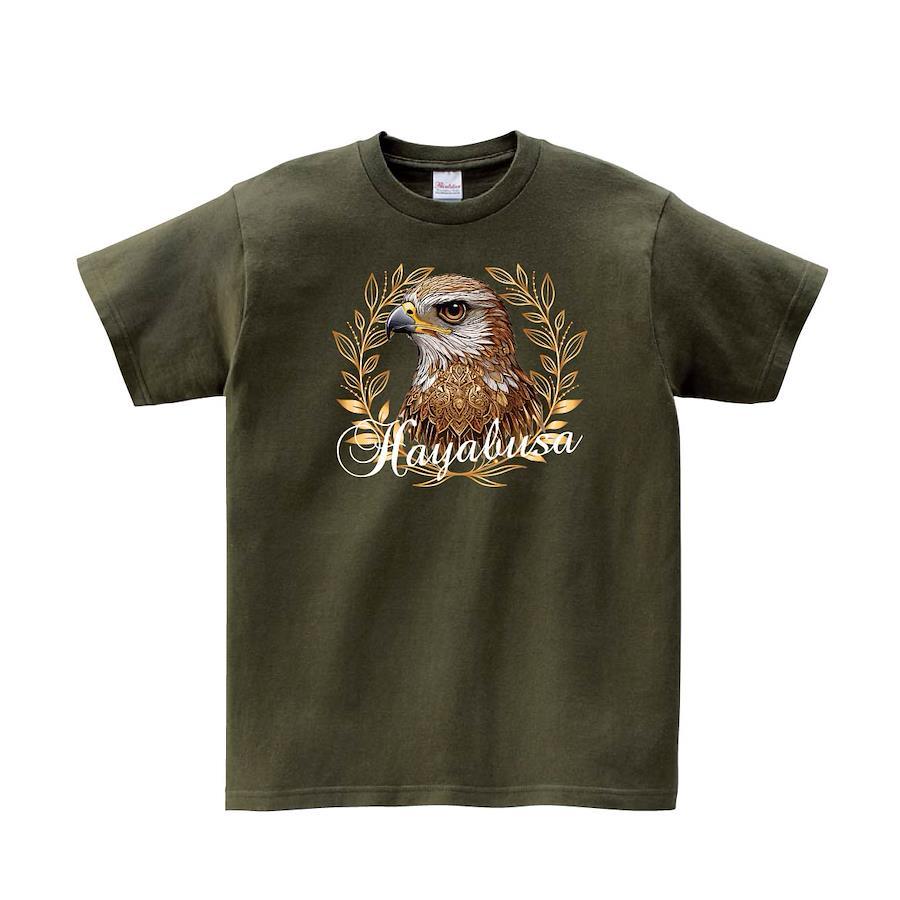 ハヤブサの紋章のエンブレムデザインTシャツです。※画像ははめ込み画像となり、実際とは多少異なりますので予めご了承ください。 ※サイズ表をよくご確認の上ご購入ください。 ※受注生産となるため、返品、交換はご遠慮ください。