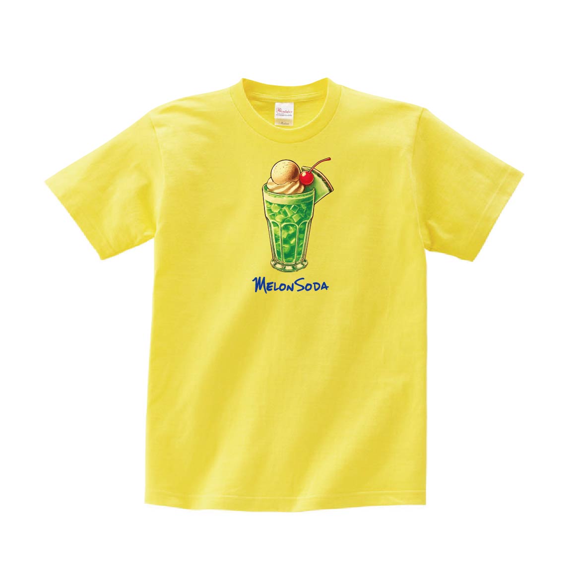 レトロな昭和感のあるメロンソーダのイラストデザインTシャツです。※画像ははめ込み画像となり、実際とは多少異なりますので予めご了承ください。 ※サイズ表をよくご確認の上ご購入ください。 ※受注生産となるため、返品、交換はご遠慮ください。