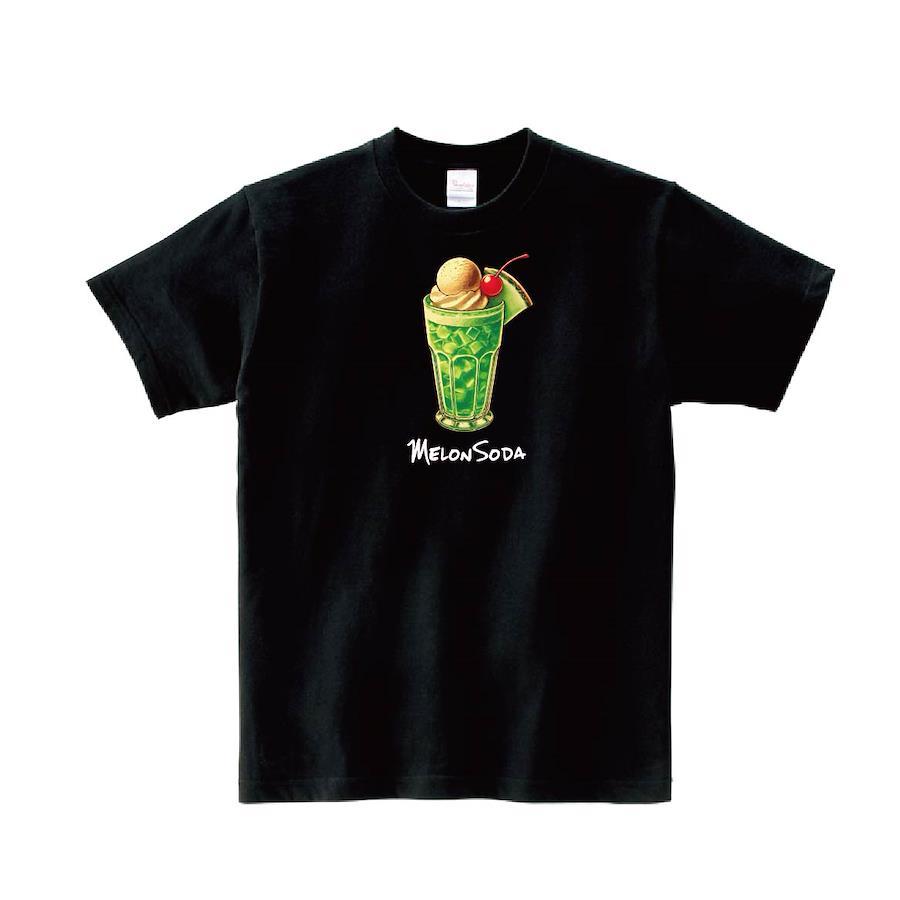 レトロな昭和感のあるメロンソーダのイラストデザインTシャツです。※画像ははめ込み画像となり、実際とは多少異なりますので予めご了承ください。 ※サイズ表をよくご確認の上ご購入ください。 ※受注生産となるため、返品、交換はご遠慮ください。