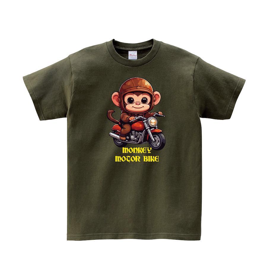 かわいい子猿がツーリングしているTシャツです。※画像ははめ込み画像となり、実際とは多少異なりますので予めご了承ください。 ※サイズ表をよくご確認の上ご購入ください。 ※受注生産となるため、返品、交換はご遠慮ください。