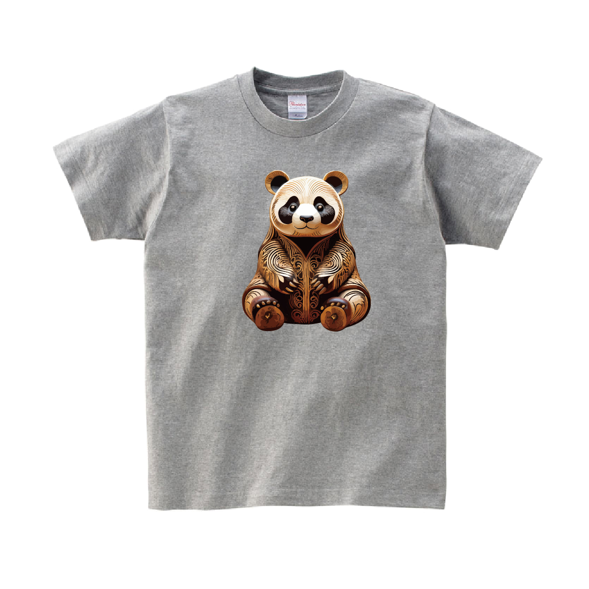 お土産っぽい木彫りのパンダのTシャツです。※画像ははめ込み画像となり、実際とは多少異なりますので予めご了承ください。 ※サイズ表をよくご確認の上ご購入ください。 ※受注生産となるため、返品、交換はご遠慮ください。