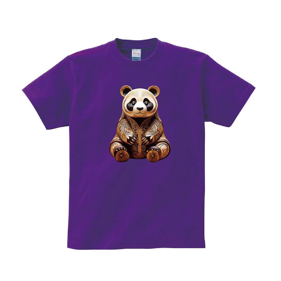 お土産っぽい木彫りのパンダのTシャツです。※画像ははめ込み画像となり、実際とは多少異なりますので予めご了承ください。 ※サイズ表をよくご確認の上ご購入ください。 ※受注生産となるため、返品、交換はご遠慮ください。