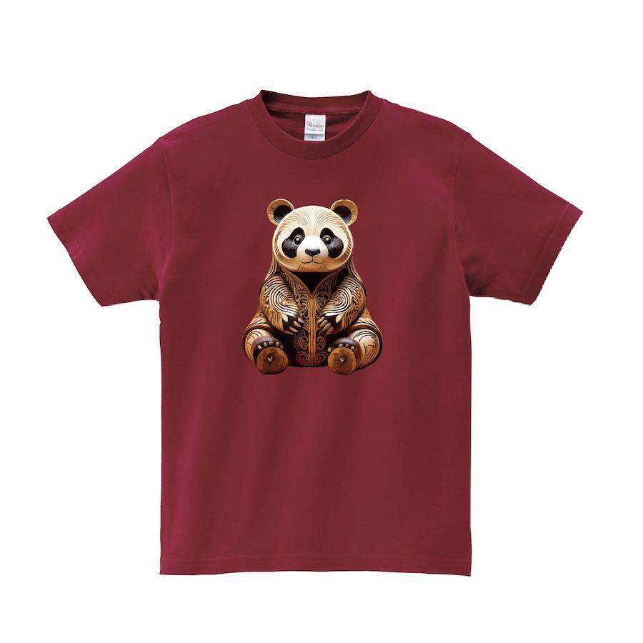 お土産っぽい木彫りのパンダのTシャツです。※画像ははめ込み画像となり、実際とは多少異なりますので予めご了承ください。 ※サイズ表をよくご確認の上ご購入ください。 ※受注生産となるため、返品、交換はご遠慮ください。