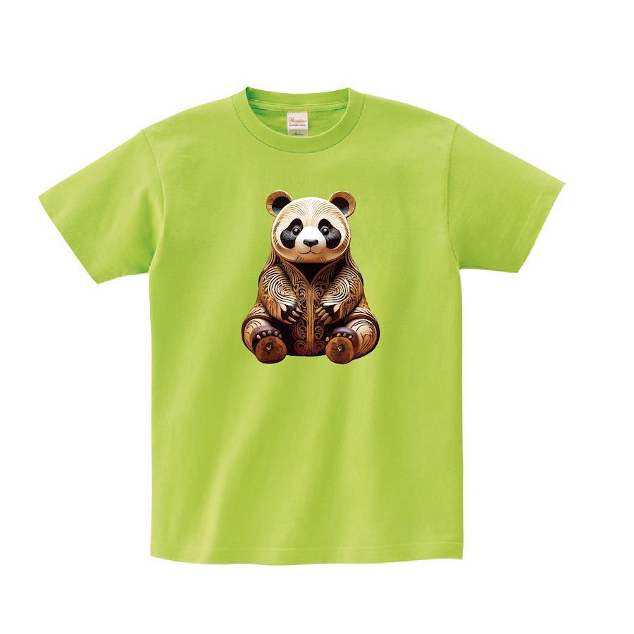 お土産っぽい木彫りのパンダのTシャツです。※画像ははめ込み画像となり、実際とは多少異なりますので予めご了承ください。 ※サイズ表をよくご確認の上ご購入ください。 ※受注生産となるため、返品、交換はご遠慮ください。
