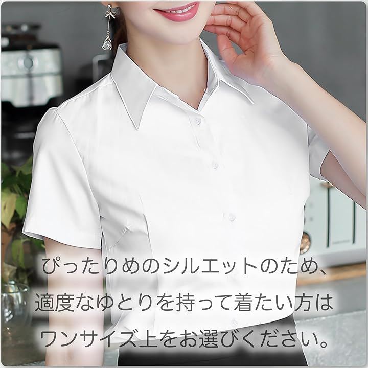 [ [ブブ オーハナ] 半袖 シャツ 無地 ウエストシェイプ ラウンドカット レギュラーカラー レディース ]