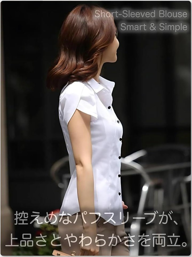 控えめなパフスリーブが、上品さとやわらかさを両立。