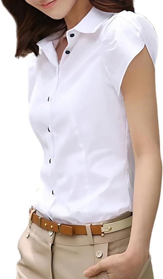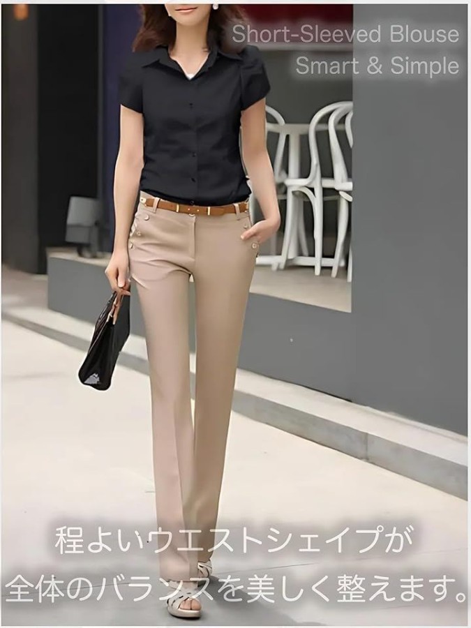 [ [ブブ オーハナ] ブラウス 半袖 パフスリーブ ウエストシェイプ 無地 シャツ レディース ]