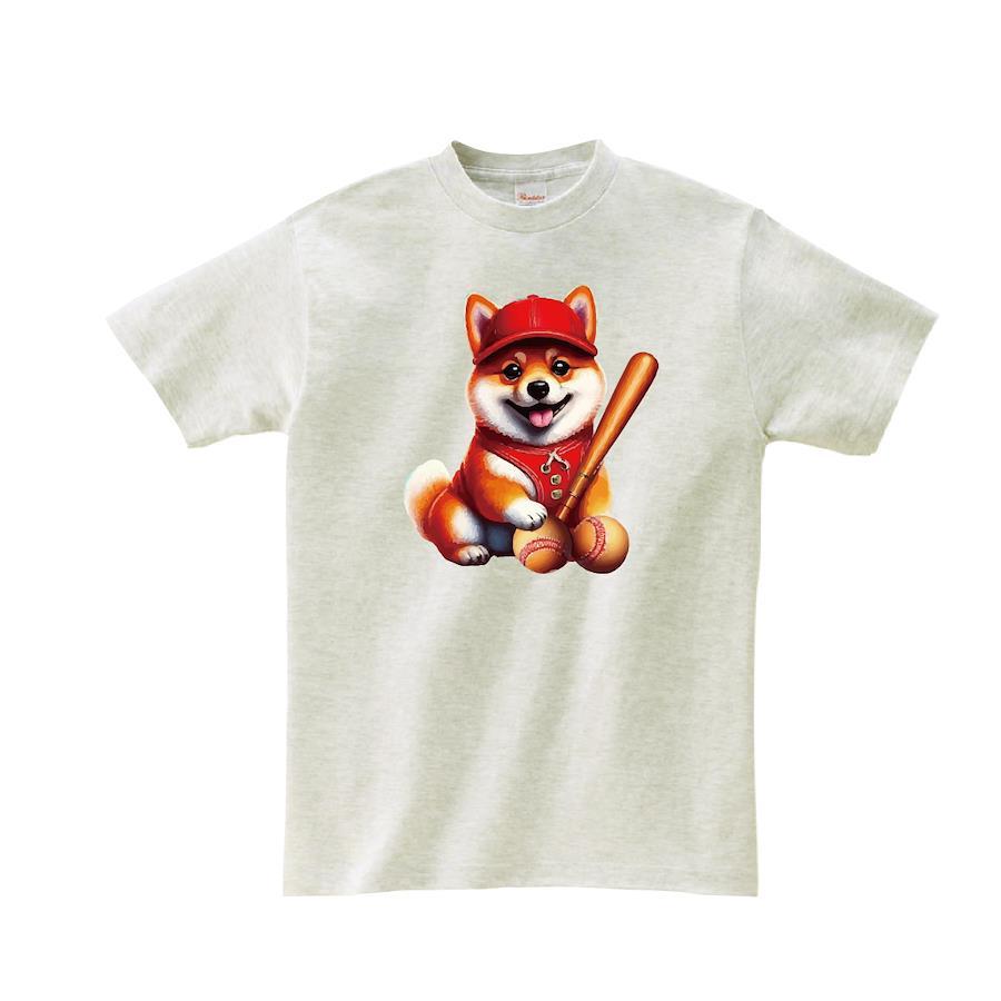 かわいい柴犬が野球をしているTシャツです。。※画像ははめ込み画像となり、実際とは多少異なりますので予めご了承ください。 ※サイズ表をよくご確認の上ご購入ください。 ※受注生産となるため、返品、交換はご遠慮ください。