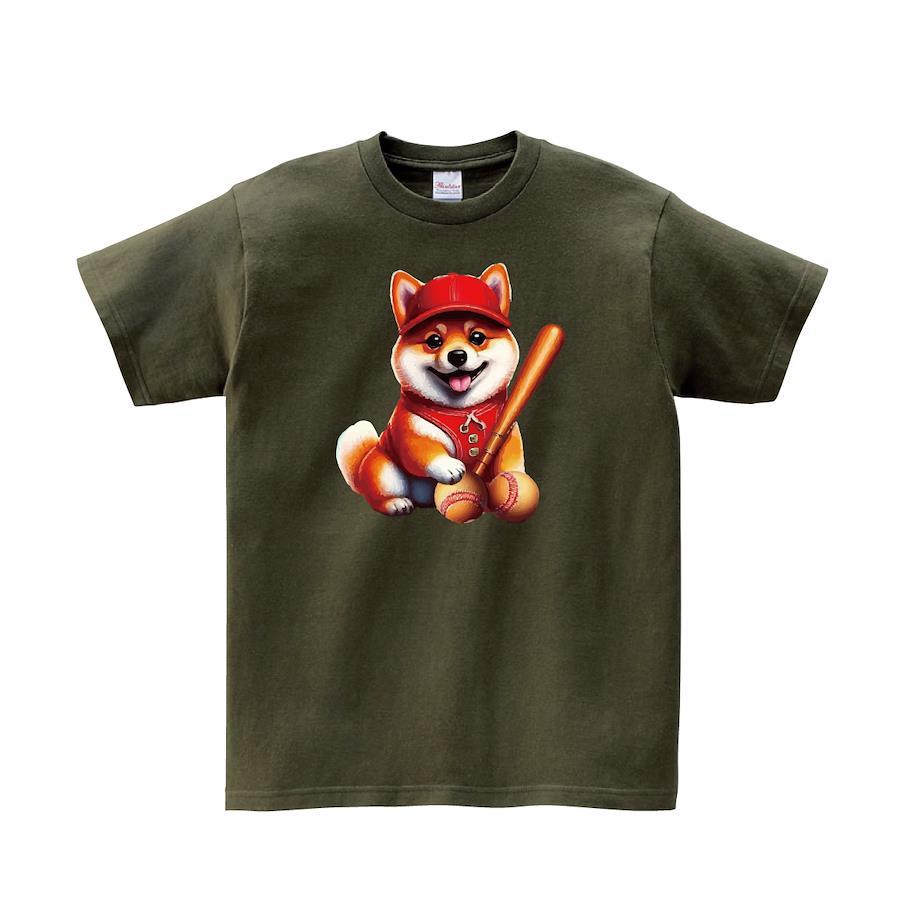 かわいい柴犬が野球をしているTシャツです。。※画像ははめ込み画像となり、実際とは多少異なりますので予めご了承ください。 ※サイズ表をよくご確認の上ご購入ください。 ※受注生産となるため、返品、交換はご遠慮ください。