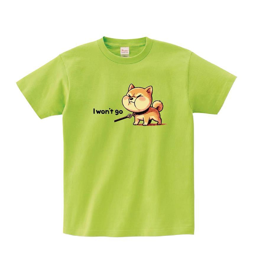行きたくない。散歩嫌いなシバイヌくんのイラストデザインTシャツです。※画像ははめ込み画像となり、実際とは多少異なりますので予めご了承ください。 ※サイズ表をよくご確認の上ご購入ください。 ※受注生産となるため、返品、交換はご遠慮ください。