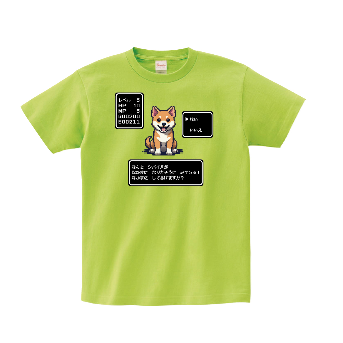 懐かしのレトロゲーム風、柴犬がかわいく仲間のお誘いのおしゃれTシャツです。※画像ははめ込み画像となり、実際とは多少異なりますので予めご了承ください。 ※サイズ表をよくご確認の上ご購入ください。 ※受注生産となるため、返品、交換はご遠慮ください。