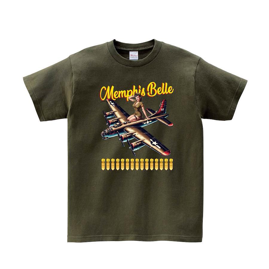 有名な爆撃機、メンフィスベルのビンテージ感のあるデザインTシャツです。※画像ははめ込み画像となり、実際とは多少異なりますので予めご了承ください。 ※サイズ表をよくご確認の上ご購入ください。 ※受注生産となるため、返品、交換はご遠慮ください。