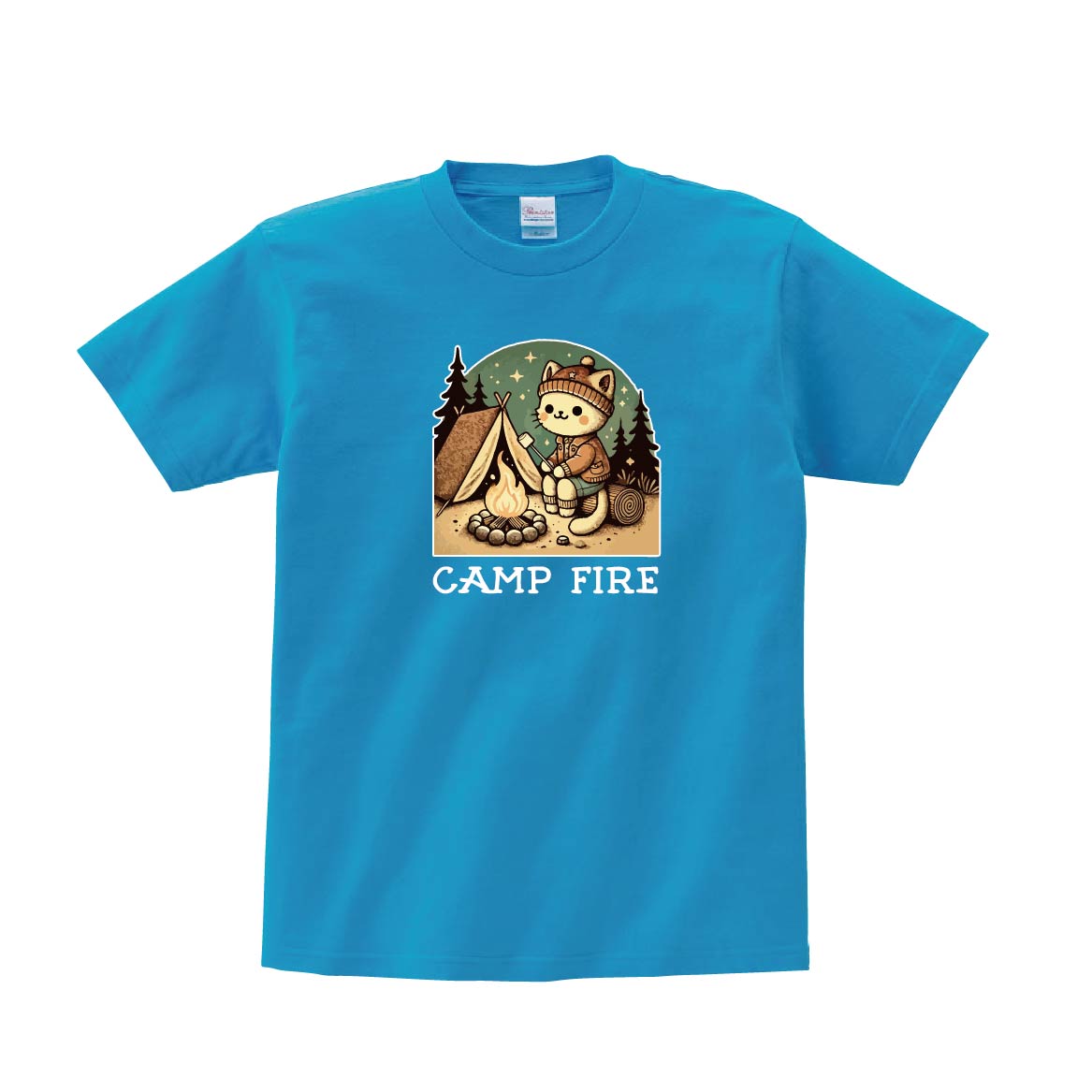 かわいい猫のキャンプのイラストデザインTシャツです。※画像ははめ込み画像となり、実際とは多少異なりますので予めご了承ください。 ※サイズ表をよくご確認の上ご購入ください。 ※受注生産となるため、返品、交換はご遠慮ください。