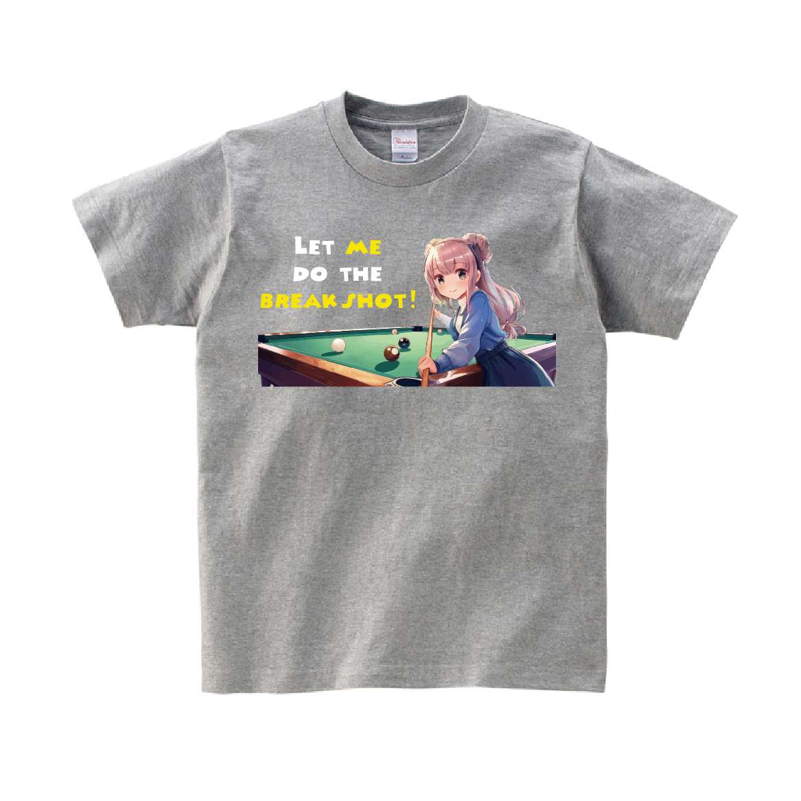 ビリヤードをやっている萌え美少女のTシャツです。※画像ははめ込み画像となり、実際とは多少異なりますので予めご了承ください。 ※サイズ表をよくご確認の上ご購入ください。 ※受注生産となるため、返品、交換はご遠慮ください。
