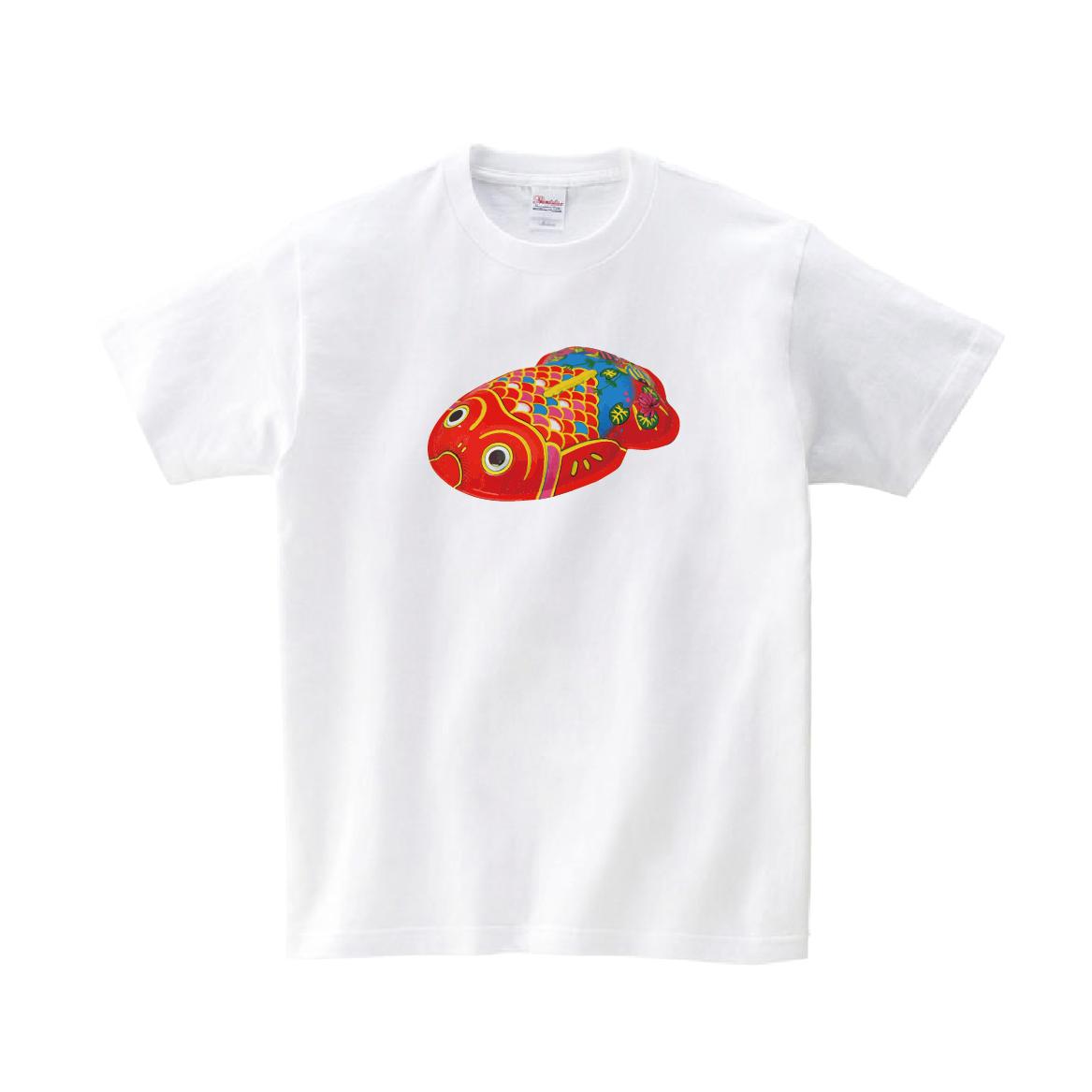 昭和レトロな金魚のブリキの玩具のTシャツです。※画像ははめ込み画像となり、実際とは多少異なりますので予めご了承ください。 ※サイズ表をよくご確認の上ご購入ください。 ※受注生産となるため、返品、交換はご遠慮ください。
