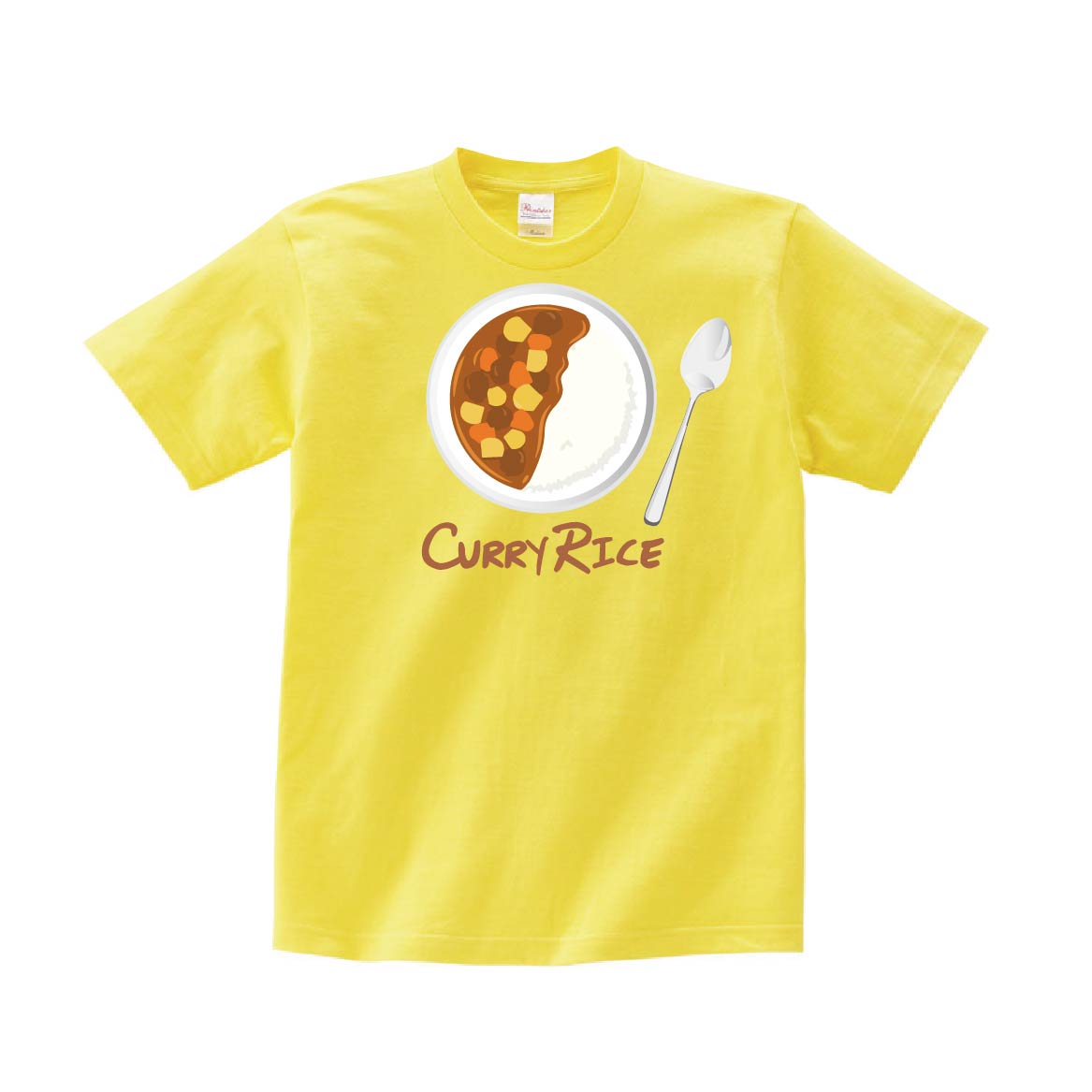 ポップなカレーライスのイラストデザインTシャツです。※画像ははめ込み画像となり、実際とは多少異なりますので予めご了承ください。 ※サイズ表をよくご確認の上ご購入ください。 ※受注生産となるため、返品、交換はご遠慮ください。