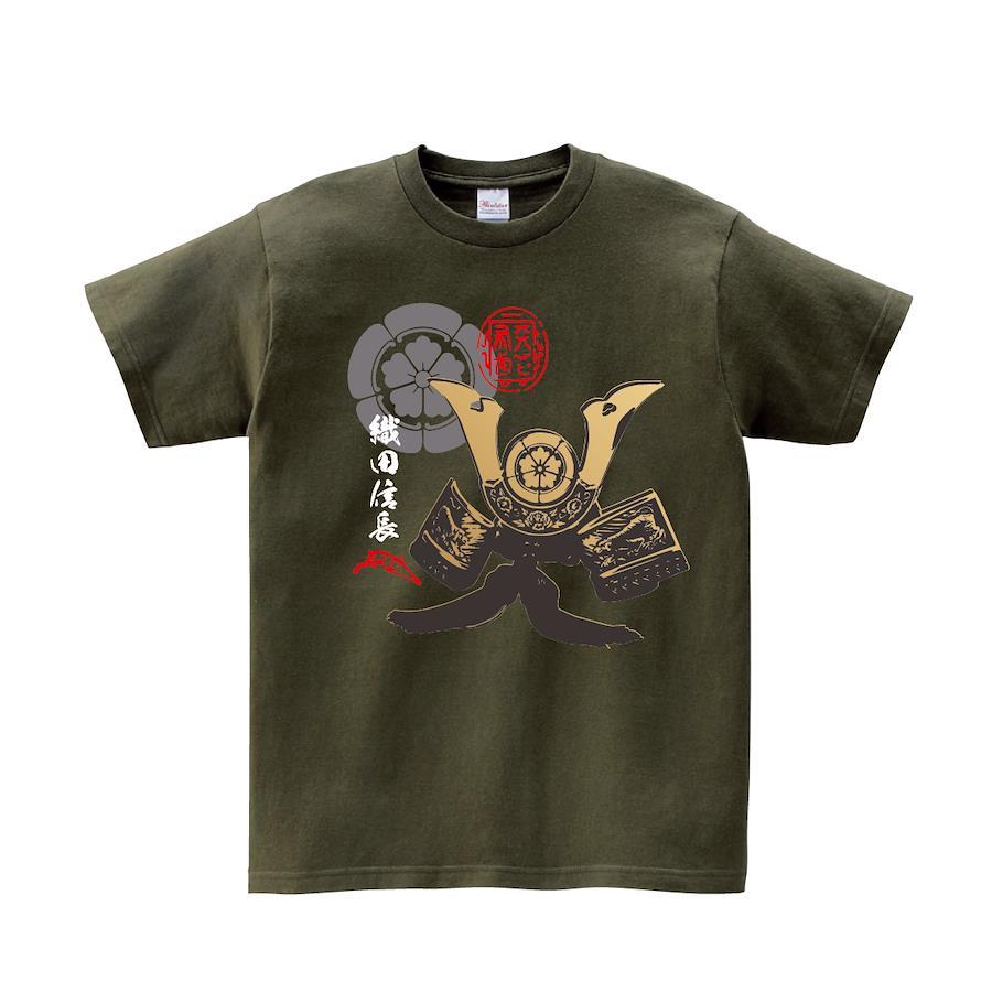 戦国武将の織田信長、家紋と兜と花押のこだわりTシャツです。 ※画像ははめ込み画像となり、実際とは多少異なりますので予めご了承ください。 ※サイズ表をよくご確認の上ご購入ください。 ※受注生産となるため、返品、交換はご遠慮ください。