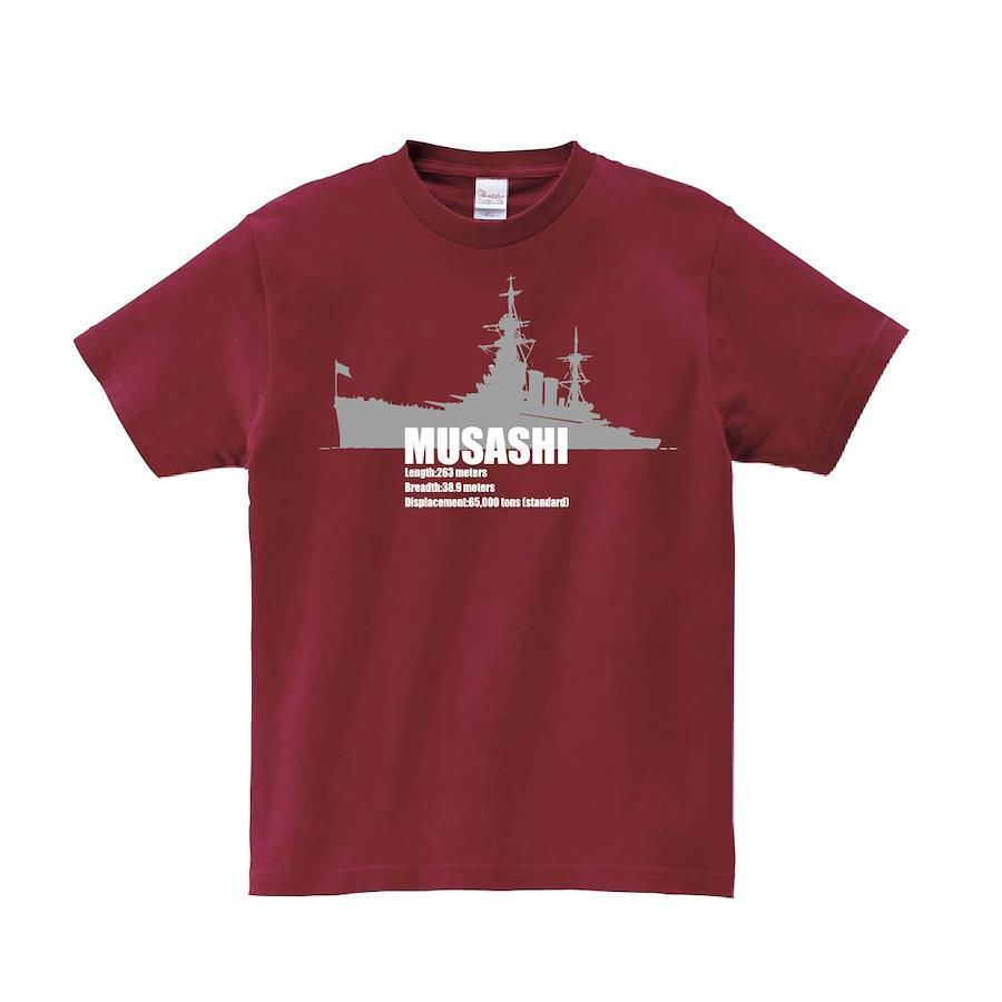 太平洋戦争時の戦艦武蔵のTシャツです。ミリタリー好きの方へのプレゼントや贈りものにも最適です。※画像ははめ込み画像となり、実際とは多少異なりますので予めご了承ください。 ※サイズ表をよくご確認の上ご購入ください。 ※受注生産となるため、返品、交換はご遠慮ください。
