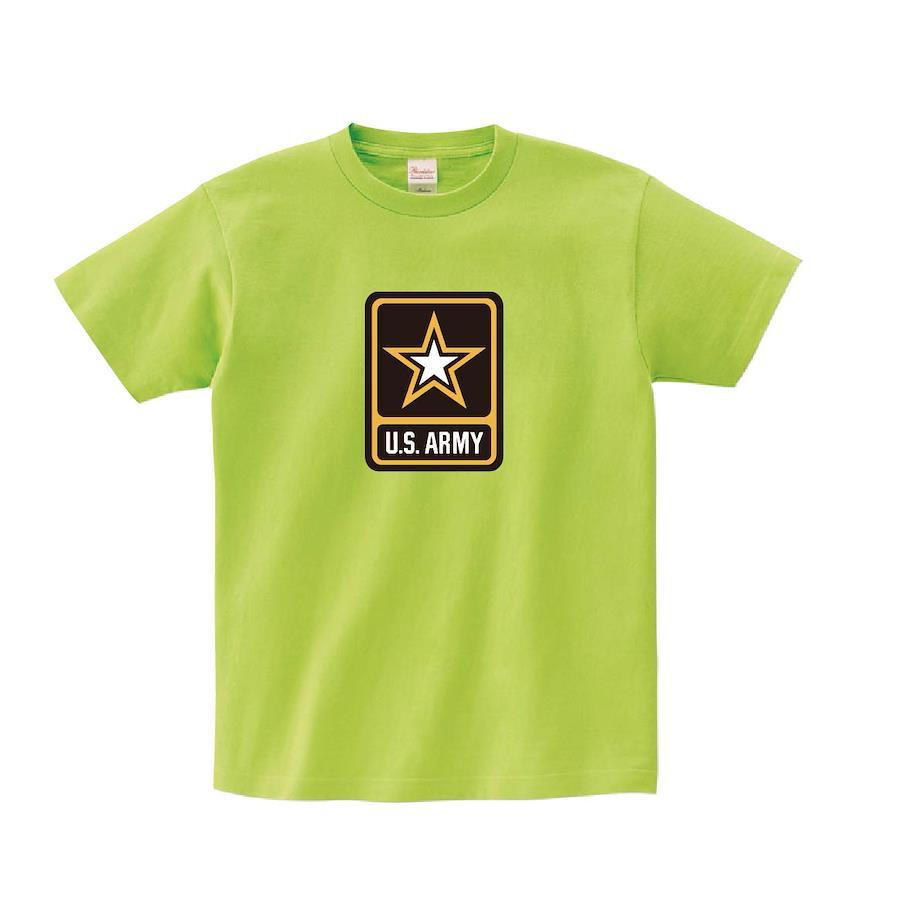 アメリカ陸軍、ミリタリースターのエンブレムデザインTシャツです。※画像ははめ込み画像となり、実際とは多少異なりますので予めご了承ください。 ※サイズ表をよくご確認の上ご購入ください。 ※受注生産となるため、返品、交換はご遠慮ください。