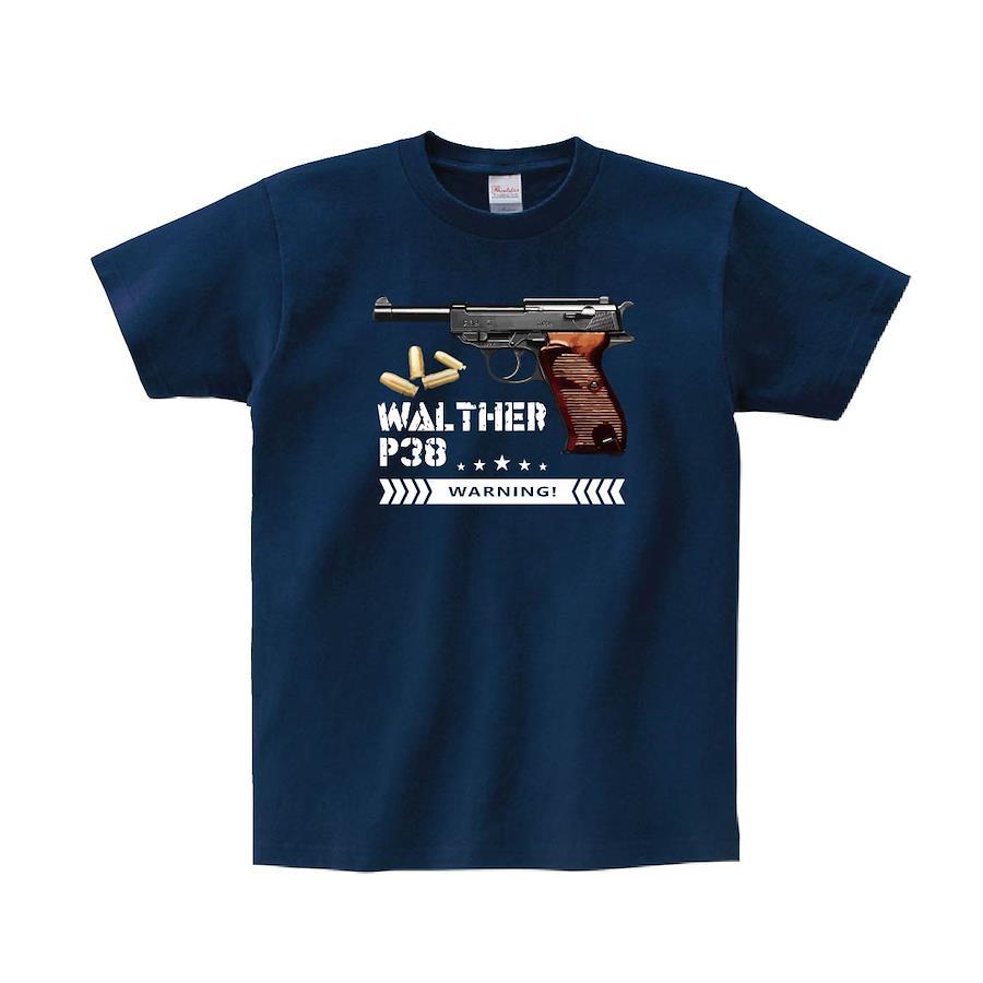 ワルサーP38のデザインTシャツです。※画像ははめ込み画像となり、実際とは多少異なりますので予めご了承ください。 ※サイズ表をよくご確認の上ご購入ください。 ※受注生産となるため、返品、交換はご遠慮ください。
