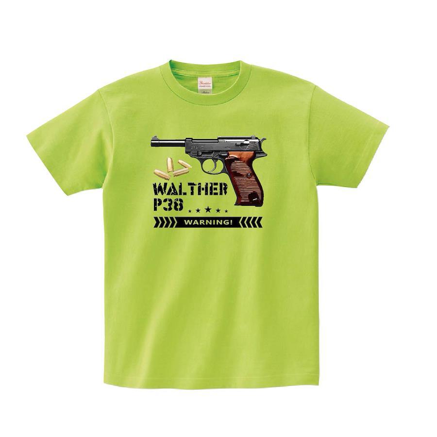 ワルサーP38のデザインTシャツです。※画像ははめ込み画像となり、実際とは多少異なりますので予めご了承ください。 ※サイズ表をよくご確認の上ご購入ください。 ※受注生産となるため、返品、交換はご遠慮ください。