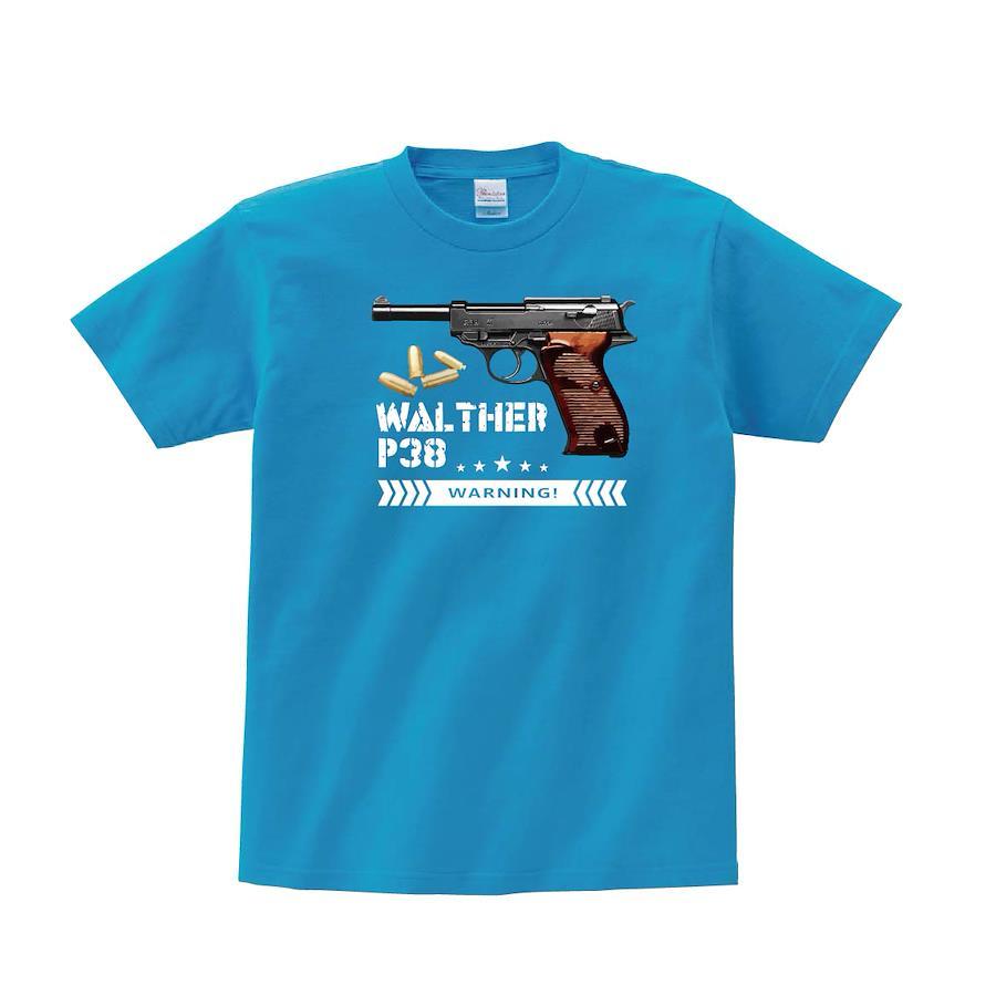 ワルサーP38のデザインTシャツです。※画像ははめ込み画像となり、実際とは多少異なりますので予めご了承ください。 ※サイズ表をよくご確認の上ご購入ください。 ※受注生産となるため、返品、交換はご遠慮ください。