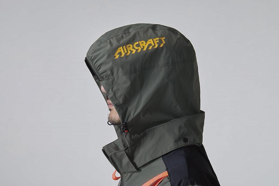 取り外し可能な大型フード(ボタン式)で、ヘルメット装着時や日差し強い時も使い分けが可能。
