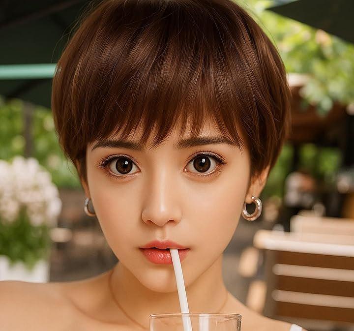 「初めてでも被りやすい」前髪にサイドの毛があるので、耳にかけてもナチュラル・ウィッグ内側に伸縮性ヘアネット付き(アジャスターでサイズ調節可能)・つむじは髪が根元から毛流があり自然な仕上がり・デイリーにもコスプレにも合わせやすく、アレンジ自由