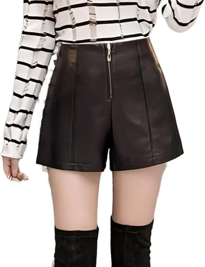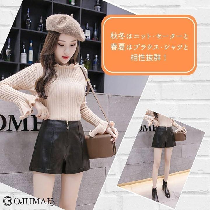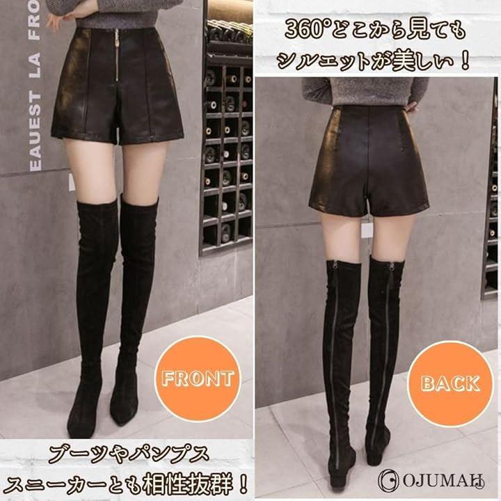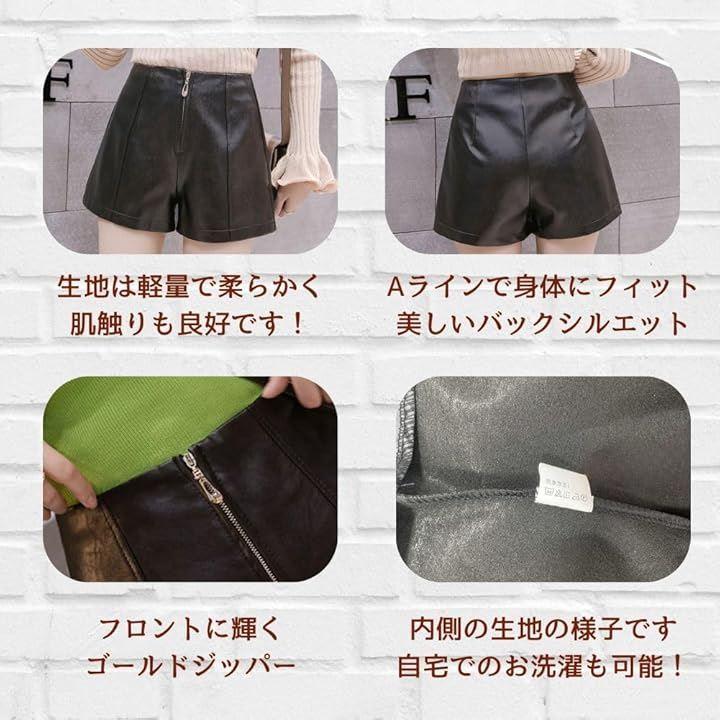 PU素材のフェイクレザー・ショートパンツです。生地は軽量で柔らかく、肌触りも良好です。