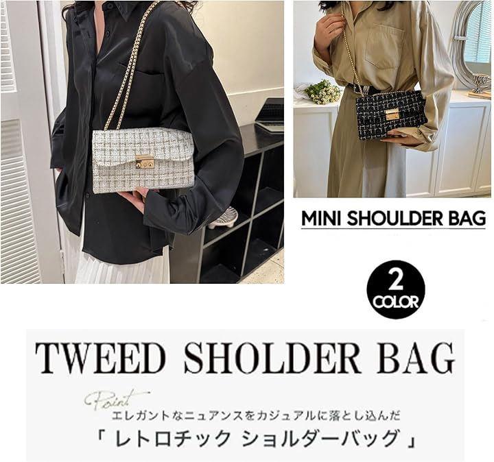 レトロクラシカルな雰囲気のツイード調のミニショルダーバッグです。