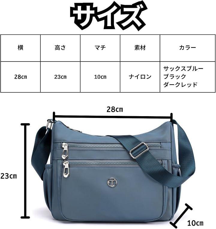 「製品仕様」サイズ:横28cmx高さ23cmxマチ10cm 重さ:300g 素材:ナイロン カラー:サックスブルー、ブラック、ダークレッド