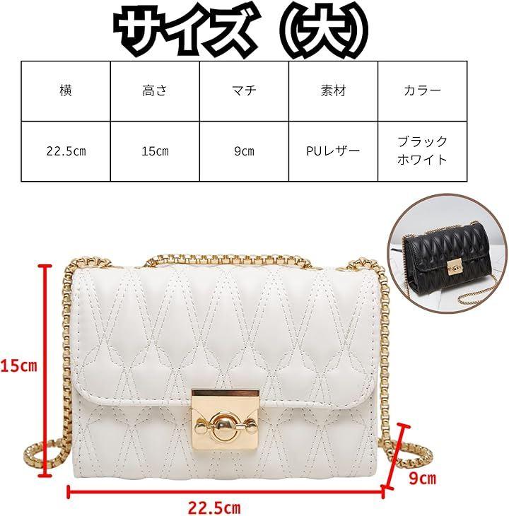 「製品仕様」サイズ(大):横22.5cmx高さ15cmxマチ9cm (小):幅19.5cmx高さ13.5cmxマチ8.5cm 素材:PUレザー カラー:ブラック、ホワイト